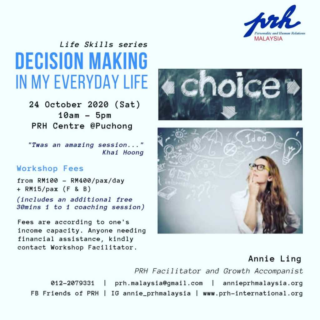 Our next Decision Making in my Everyday life Workshop is on 24th October 2020.